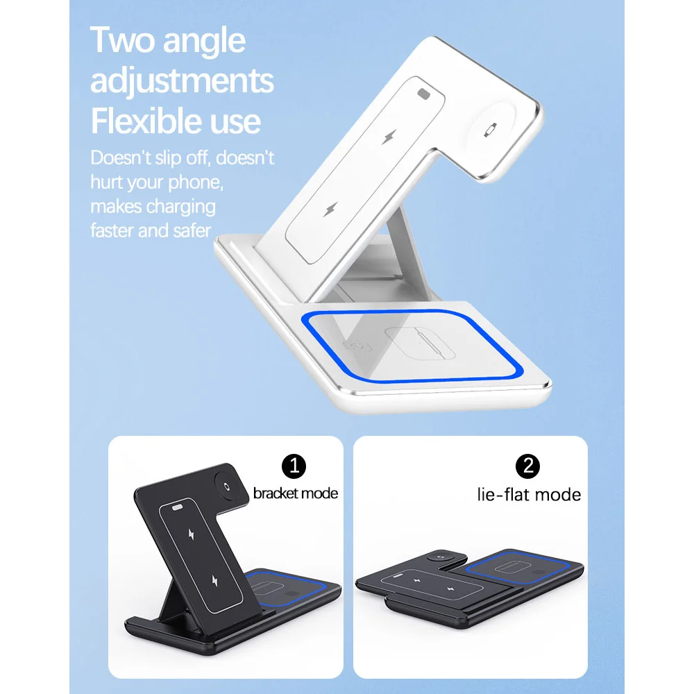 Charge smarter and faster with the 2025 100W Fast Wireless Charger Stand, an all-in-one charging solution for your Apple devices. Designed for iPhone 15, 14, 13, 12, 11, Apple Watch (Series 5–9), and AirPods Pro, this sleek foldable station combines power, style, and convenience in one compact design.